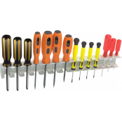 Держатель отверток DO-14 может быть установлен в качестве дополнения на инструментальную панель верстаков серии ВС, ВТ, ВД, ВДТ, а так же на перфорированный экран стеллажей серии СК, МКФ, СГР. Изготавливается из холоднокатаной стали. Имеет 14 отверстий для размещения отверток разного размера. Для крепления к верстаку используются винты М6х10 с гайками(входят в комплект). Покрытие - порошковая полимерная краска. Цвет светло-серый RAL 7035.Инструкции и сертификаты: